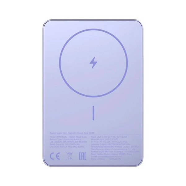 Внешний аккумулятор Xiaomi Super Slim Magnetic Power Bank 5000mAh WPB0507S фиолетовый