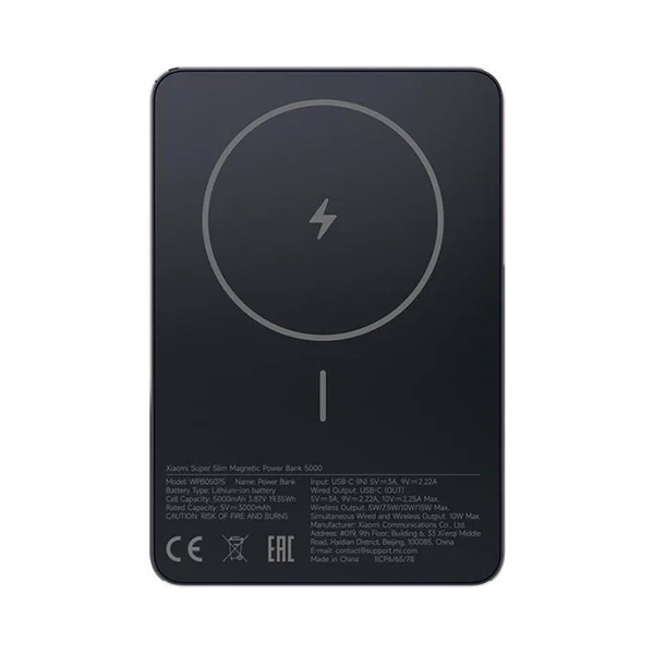 Внешний аккумулятор Xiaomi Super Slim Magnetic Power Bank 5000mAh WPB0507S чёрный